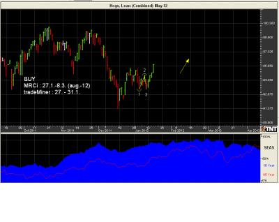 Sentrix, momentálně hledám a čekám, nejsem v žádném sezoním obchodě. Dow Jones zklamal, na jih se nevydal. Pro tento případ má Williams záložní předpověď - měl by být býčí až do března. Dnes jsem vyčistil TnT od svých "očekávání" a nechal jsem tam jen Lean Hogs. Zdá se tam tvořit pattern 1,2,3 počkám, zda se vytvoří korekce někde k 95,100 a možná vstoupím. P. PS Dnes jsem sice vstoupil ještě jednou na swing do Cocoa, ranní otevření vypadalo nadějně, ale asi dnes vystoupím.