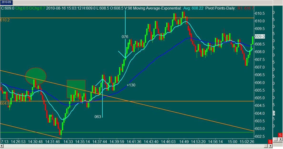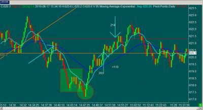 UT 17.8.10 Vcera jsem pomahal kolegovi v praci dlouho do pulnoci, dneska jsem jeste rano vyrazil na nakupy a vratil jsem se domlacenej tesne pred open, do toho jeste remeslnici co se mi motali kolem pocitace ,takze se mi do obchodovani nechtelo, nicmene dal jsem slib !!! Pres noc se russel vysplhal na sever a po openu startoval na pivotu R1 (nerad obchoduji formace blizko pivotu), reporty dopadli vicemene pozitivne, tak jsem se rozhodl pockat na nejakou obchodovatelnou formaci - prisla double bottom (ctverec) tak jsem zadal prikaz k nakupu , jenze suport byl prekonan (zakrouzkovano), ale okamzite se trh odrazil zpatky na sever tak jsem zbytril, protoze se domnivam ze pod tim DB zarybarili byci (jestli je mozny to tak vubec napsat). prikaz jsem dal pri prorazeni kanalu a profit target umistil blizko pivotu R1, dneska koncim se ziskem +110$. Premyslim zda pro me nebylo lepsi ,kdyz jsem prvni obchod ztratil, pak jsem se musel opravdu snazit vydelat ztratu zpatky a jeste neco navic. Jak jsem utahenej tak dnes nemam radost ani tech pet minut. pozitiva dne: vydelal jsem penize, profit target jsem upravil podle mych pravidel, obchod jsem uzavrel pred 16:00 SEC negativa dne: pouze jeden obchod, obchodoval jsem v ne moc dobre osobni kondici, obchodoval jsem tesne pred 16:00 SEC. vsem preji pekny a uspesny den