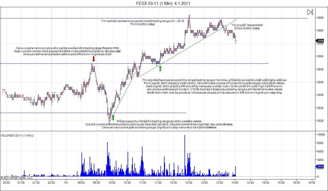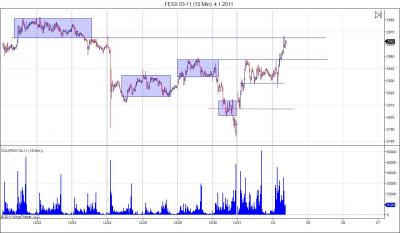 Rossi: když dovolíš, tak bych dnešní screen vložil do tvýho vlákna. Naše přístupy se nijak zásadně neliší. Jediný větší rozdíl je ten, že já se snažím využívat nejen horizontální, ale i klasické vertikální volume. Dnes jsem neměl možnost sledovat FESX živě, takže tohle bude jen ex-post analýza. Trh dnes respektoval S/R úrovně a našly se v něm tři situace, které zapadají do mé strategie. Na screenech je popis, jak bych je býval chtěl zobchodovat (ale nevím, jak by to dopadlo naživo). Ještě jsem se tě chtěl zeptat Rossi, jaké používáš konkrétní vstupy. Máš nějaké vypozorované patterny?