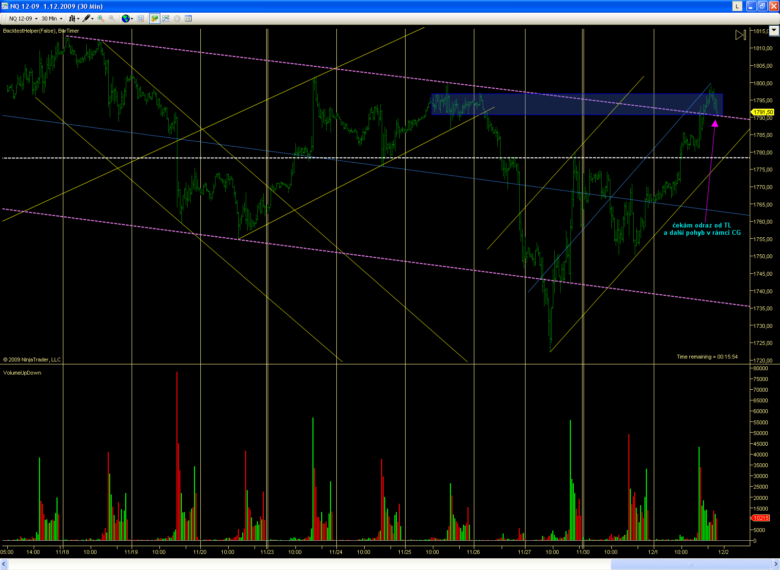 Tak dávám můj včerejší pohled na NQ. Včera jsem na trh koukal dost z pohledu 15 min tf, proto dávám screen z něj. Realizoval jsem jeden obchod na průraz bodu 2 v 123 low na úrovni 1774. Protože to bylo zároveň proražení CG, tak PTG 40 USD s myšlenkou vrátit se zpět do trhu pokud by se na 5min tf udělal Rh. Ten se udělal, ale já nebyl u compu. Vím že PTG je malý, proč dávám takový jsem popisoval někde výše. Tady asi měla přednost formace 123 low oproti CG a PTG mohl být větší. Aspoň zkušenost.