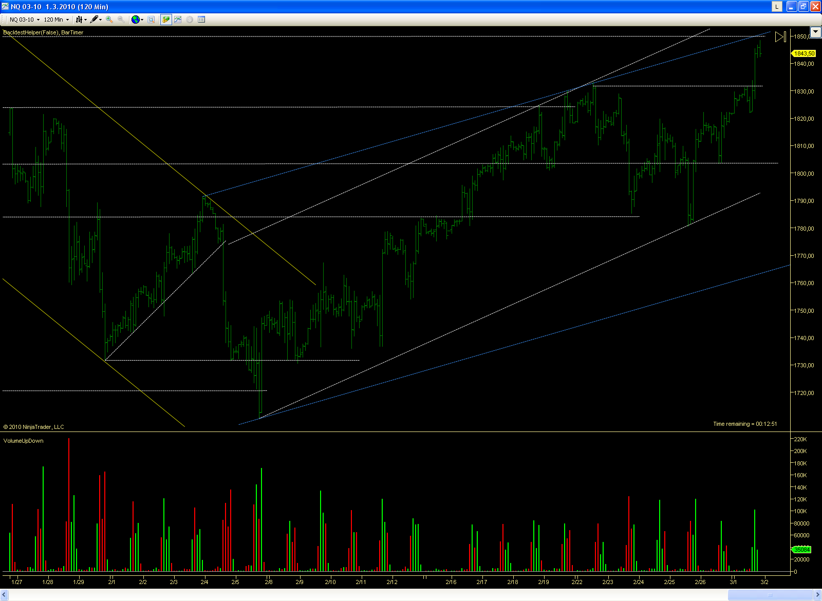 Gladiator: Ahoj po delší době. Mám dotaz na zakreslení kanálu na současném trhu NQ. Přikládám screen s mým pohledem a chtěl bych tě poprosit, zda by jsi neřekl svůj názor, jak by to podle tebe mohlo být. Mám tam 2 varianty - jeden kanál zakreslený bíle a jeden modře. Díky Jarda