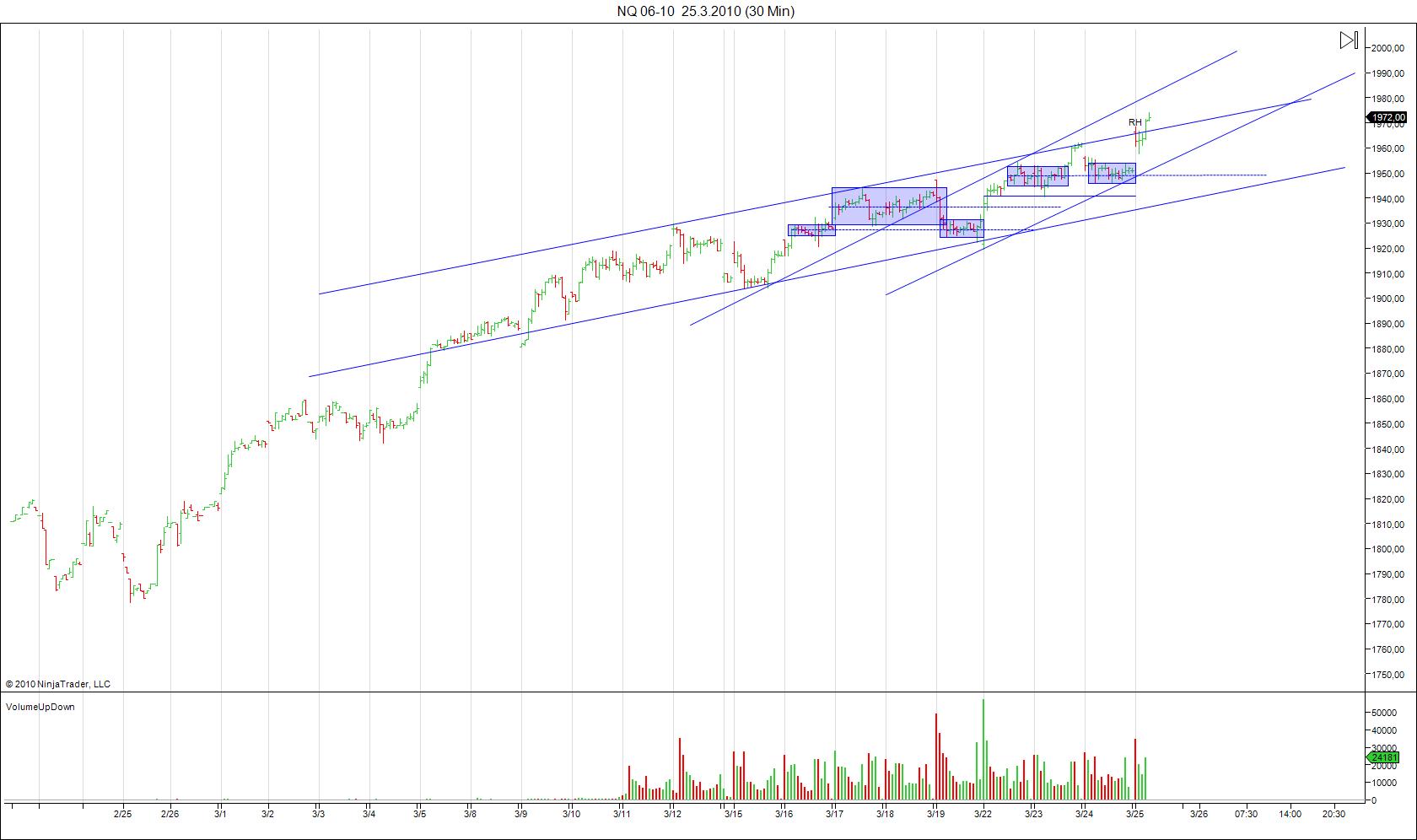 Tak nakonec se nechce trhu tak up jak jsem předpokládal :) I když jak si tak ted pro sebe přemyšlím po proražení mojeho RH se trh moc nahoru nedral :) ale až takový pokles :) No tak zítra uvidíme akorát vím že můžu smazat moji poslední trendline :)