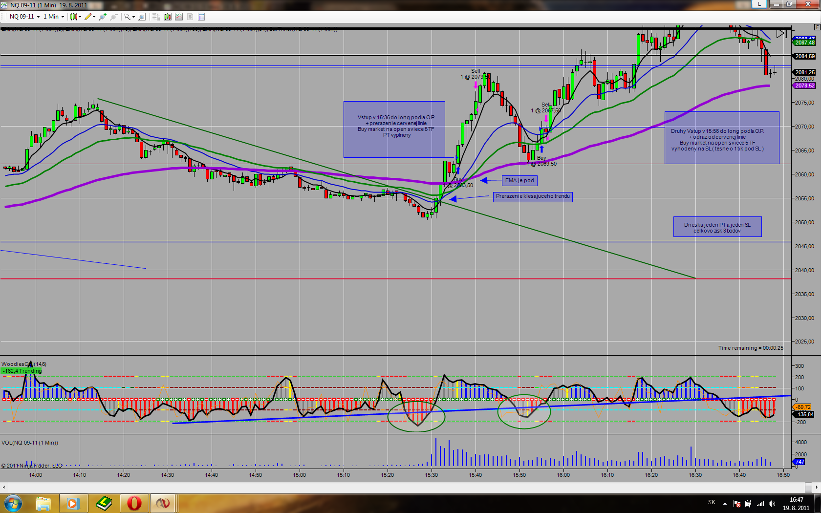 Zdravim, moje dnesni obchody. Po drobne modifikaci vstupu (snizeni risku) jsem byl trosku nejisty, ale snad se to s casem srovna. Obchody #1 a #2 s drobnou chybou, ale jinak den hodnotim jako temer perfektni. P.