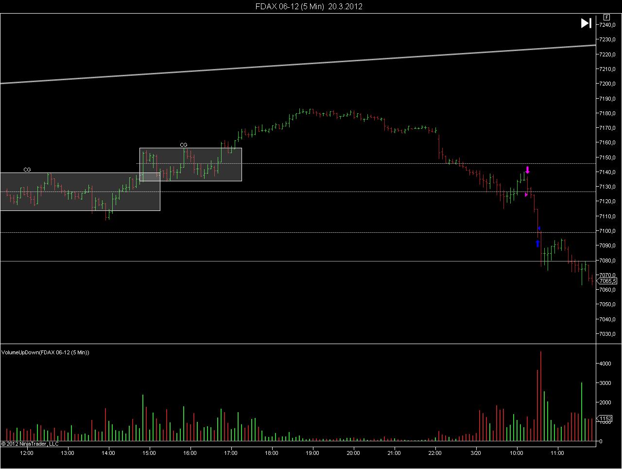 Zdravím. :) Taky se snažím podle gladiatora ovšem jedu jenom sim a na FDAXu protože mi nějak s FESX blbnou data. :) Tak jeden obchod druhé proražení CC. a výběr v druhém congestions chtěl jsem jenom přitáhnou SL ale musel jsem jít tak jsem pozici uzavřel.