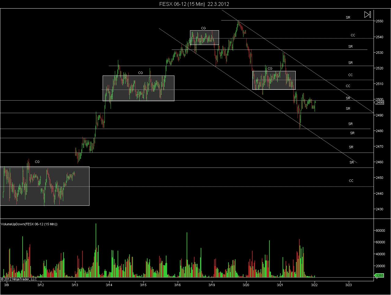 Zdravím všechny, rozhodl, že také přispěji svoji troškou do mlýna a třeba bude pak následná diskuze přínosná pro všechny strany. Obchoduji live fesx. Obchodoval jsem s dvěma kontrakty, dostal se do plusu, nějaké peníze vybral, nicméně pak jsem udělal mnoho chyb a teď jsem asi v 12 procentním minusu. Přešel jsem na obchodování jednoho kontraktu, protože mám velký problém s exekucí, jakmile se objeví signál, tak je pro mě dost těžké zmáčknout spoušť. Pravděpodobně strach ze ztráty peněz nebo z toho, že se budu mýlit.. Nepomáhá ani to, že většinou tu pravdu mám :). Kontrakt ukončuji na nejbližší úrovní. Nyní mi nejde o to vydělat peníze, ale spíše o to, aby exekuce byla pro mě mechanická záležitost. Systém vypadá podobně jako zde obchoduje finančník Petr, nicméně OP byl postaven zcela nezávisle a už před delší dobou. Tak plán pro dněšek. Ve fesx jsme po pondělním růstu měli trochu klidnější den, kde jsme se drželi range z pondělí. Důležité bylo, že jsme nepřekonali pondělní high a i po počátečním růstu jsme se odrazili od VPOC cele oblasti smerem na jih. Proto jsem trochu naklonen vice short strane, ale stát se může cokoliv. Dle profilu jsme meli double-distribution day s lvn 2211, která pro mě bude jedna z klicových oblastí. Pocatecni short v prvni hodine obchodovani jsem vcera videl jako, že ten kdo nakoupil v pondeli vybiral zisky. Zony pro nakup 2172-hlavní LVN 2211-y´profile lvn 2184- mala hvn oblast a low, které sice už bylo prekonano, ale stále má pro mě vetsi vahu nez 2147. zony pro prodej 2228-mnohokrat vyzkousena lvn zona, na kterou si budu davat pozor. je to take VAL 2246-hlavní VPOC cele oblasti 2297-take mnohokrat vyzkousena lvn 2312-hlavní sell rezistence na kterou už jsem nekolikrat cekal. Očekávání 1)Pokud otevreme na close a pujdeme UP, tak první sell signal budu hledat na 2228, tuto hranici pouziji i jako pro případný flip UP k 2246 (pokud selze long). Pokud se odrazime down budu ocekavat hitnuti 2211, kde bych ocekaval alespon malou counter rotaci UP a pokud se trh už mít k longu nebude, tak použít tuto hladinu pro short s ocekavanim dalsi zony Pokud po otevreni pujdeme short, tak hlavní zona pro nakup bude 2211, ktera když selze poslouzi i jako pripadny odraz pro short. Dalsi zony budu obchodovat dle barev 2)Pokud otevreme nad 2228 a pujdeme down, tak primarne budu hledat uzavreni VPOC, kde by mohla byt alespon mala rotace UP a hlavni long na 2211 s rezistenci na 2228. Pokud selzeme long tak viz 1 Pokud pujdeme UP, tak prvni rezistence na 2246 se supportem na 2228 nebo 2211 3)Pokud otevreme pod 2211, tak tuto oblast budu brat jako rezistenci. Pokud 2211 prekoname, tak ocekavam malou rotaci na VPOC 2221 a nasledne rezistence 2228,2246.... Pokud pujdeme short, tak tradicne long na 2184 a 2172