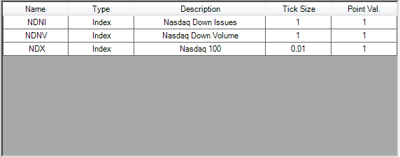 Poznam specifikacie velkeho nasdaqu, preto ma aj laka. Avsak nemozem ho nijak natukat na Ninji. Neviem ci je potrebne ho nejak specialne zapnut ako trhy EUREX alebo ako? Kedze hladam drahsi trh uvazujem prave nad nasdaqom kedze uz nejaky ten cas obchdoujem trh NQ tak predpokladam ze NQ vlastne len kopiruje pohyb hlavneho NASDAQU, - no opakuuem nemozem sa tam nijako dostat. AK zadam do Description v NT symbol ND vypise mi nasledovne Avsak ide o to ze ked nacitam napriklad NDX ako je tam uvedene tak sa mi trhy nehybu. Dakujem za odpoved