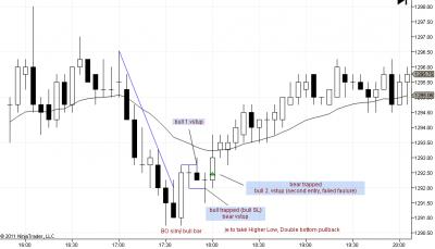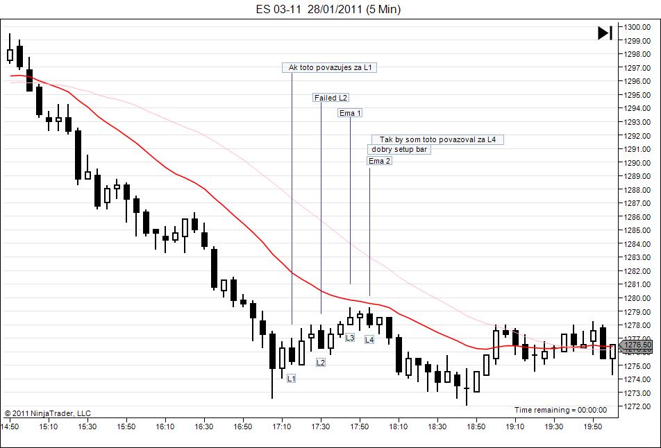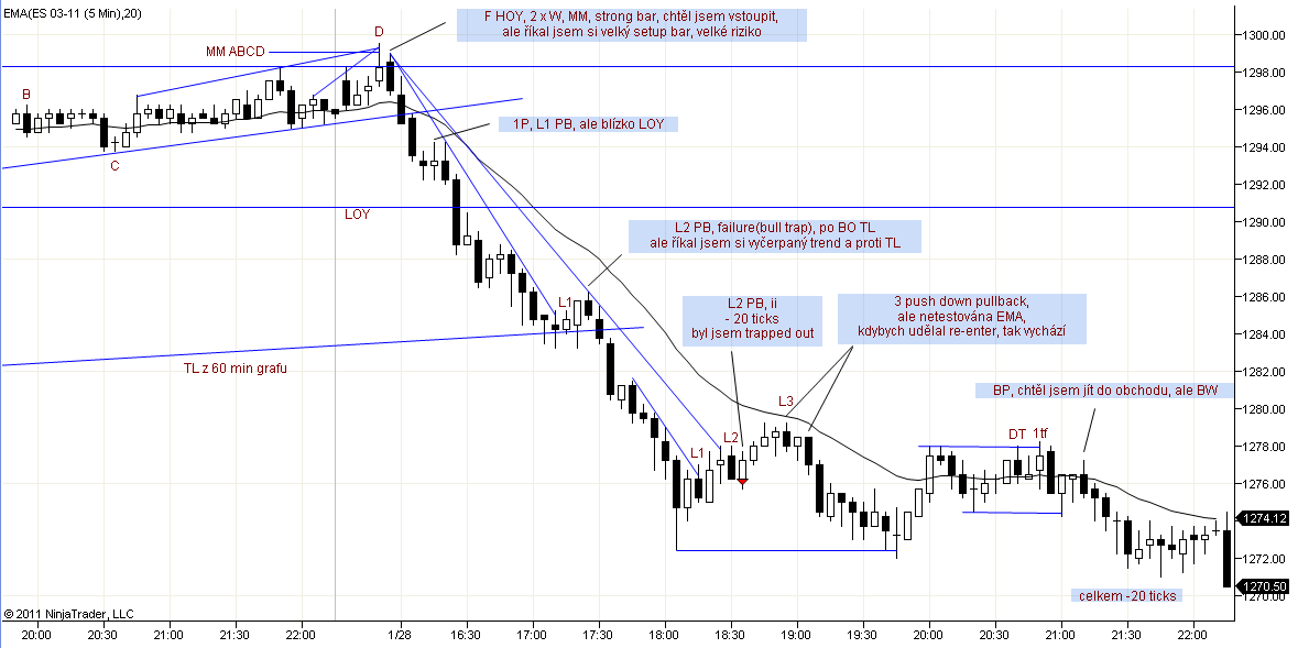 Bar 21:50, hodně dobrej short setup, máš to tam pěkně vyznačený :-), ještě bych doplnil, že to je také Wedge a hlavně failure HOD, je taky dobrej bear trend bar, tělo velké a close dole.