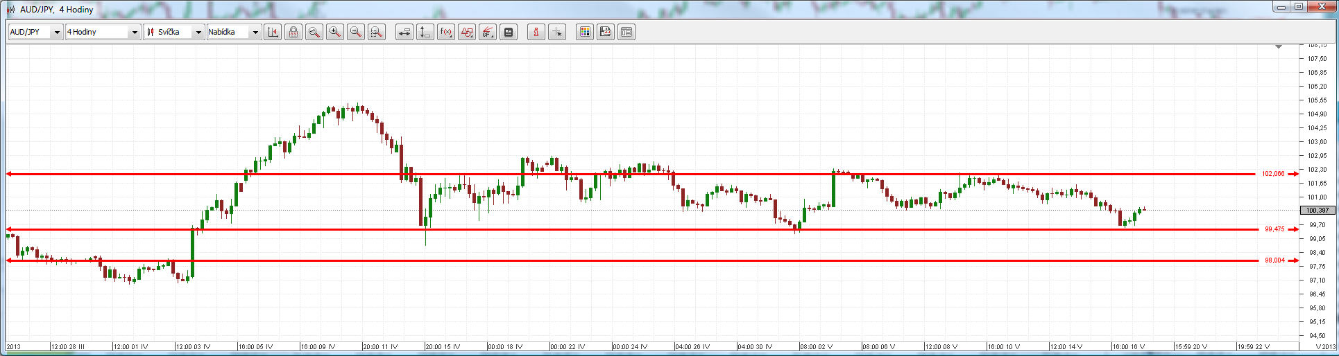 Jinak ten AUDJPY se mi moc libi a muj osobni nazor je, ze AUD pujde v prubehu pristiho tydne raketove nahoru. Mrknete na weekly graf AUDUSD, cena se blizi klicove SR, ze ktere se v minulosti 3x prudce odrazila zase vzhuru. Rozhodne bych nechtel chytat padajici nuz a jit proti trendu, ale myslim si, ze by ten obchod na crossu s jenem z tohodle duvodu mohl vyjit a udelat nejaky zajimavy pohyb.