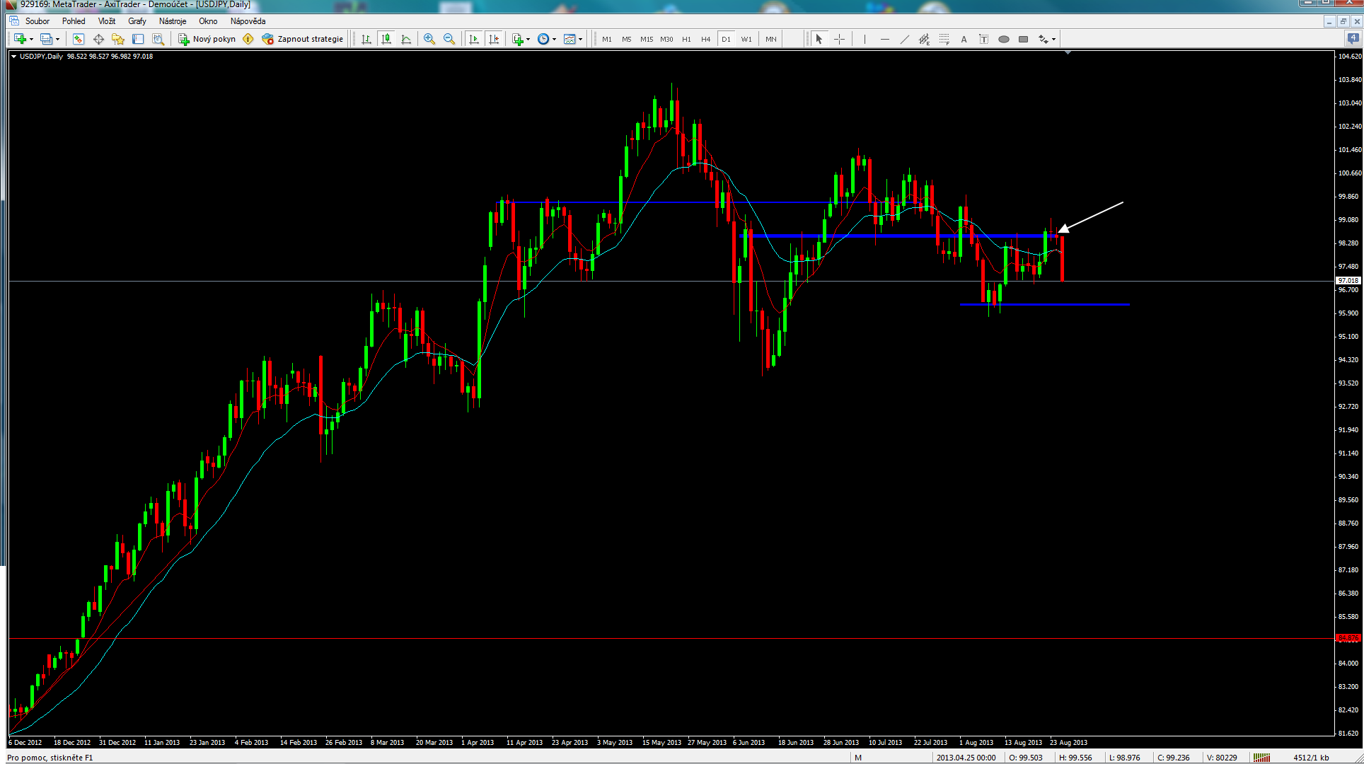 Ty trojúhelníky mám zakreslené pouze na těch touchích, na hlavním je nijak moc nesleduju, ale tyhle dva jsou dost zřetelné. Jinak na tom UJ, tam jsi měl na daily nějaký vstup? Vidím tam akorát 2x doji. Já se vezu v AUDJPY (v tom už dlouho) a GBPJPY od včerejška, zatím to vypadá, že tyto dva mi vynahradí předchozí ztráty.