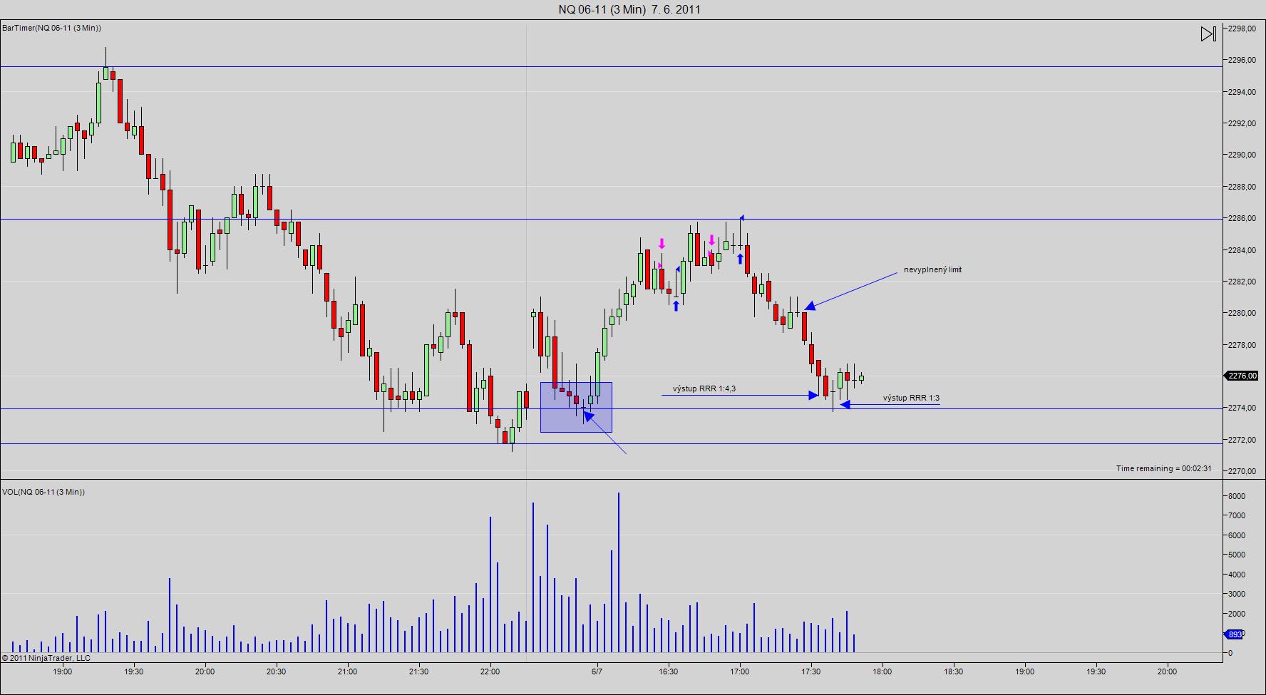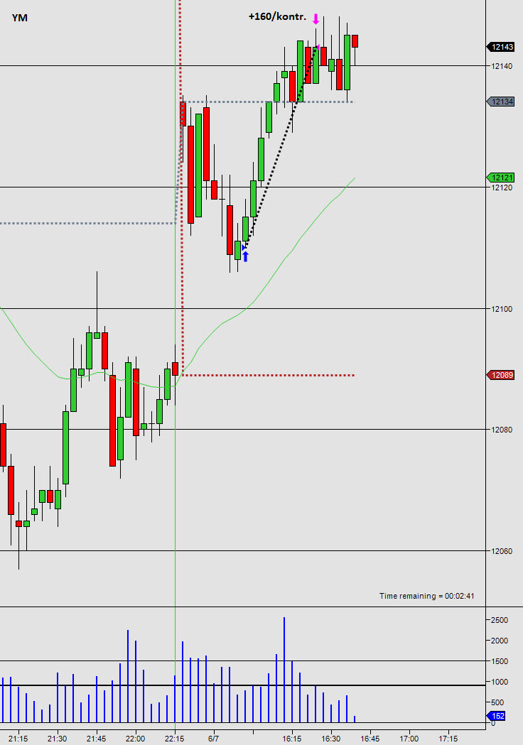 můj dnešní vstup na YM..vystoupil jsem diskréčně dřív, protože trh začal být hodně nejistý, navíc na té úrovni došlo k obrovskému nárůstu volume a bylo nebezpečí korekce short, kterou jsem nechtěl přečkávat..původní PT by byl zasažený o pár minut později, ale stálo by to hodně nervů...i tak stále velmi pěkné RRR 1:4,5... majkll