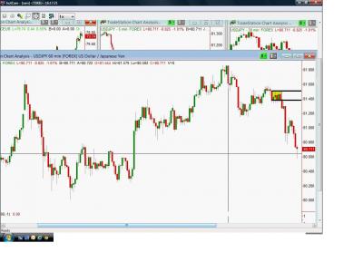 k zamysleni - podivej se, jak vypadaji svice, kdyz se trh blizil k tve S/R. trh byl slaby (close nikdy nebylo poradne blizko high - dlouhe horni knoty) a svice se zmensuji - supply uplne valcuje demand, takze evidentne tvoje s/d byla zakreslena spravne. pak uz jenom otazka, jestli by jsi treba na nizsim TF nedokazala najit vhodnou pozici do shortu, protoze skoda tohle pustit kvuli 1 ticku, ale plan je plan... :)