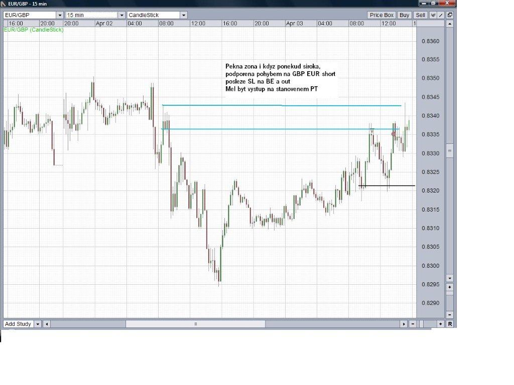 Vcera jsem se rozepsal na tema vystupy no a dnes tu mame krasne priklady jak rizeni vystupu a rizika rozhoduje o o tom jak velka cast potencialniho profitu skonci na uctu a jak velka cast naseho uctu zkonci na ucte nekoho jineho. Trade c1 long spec na rychly break out, vymenteni SL neco lehce pres 10pip zisk, nabidnuto az 15 na ucte konci jen 7. Trade c2 pekne i kdyz ponekud sirsi Supply PT 15pip tak jako v prvnim pripade nezaviram na PT a koncime na SL zisk 0 Trade c3 pekny supply, risk 7pip potencial 30pip zaviram s 40pip. Vsechny vstupy realizovany s ohledem na PA na GBP a EUR. At se dari.