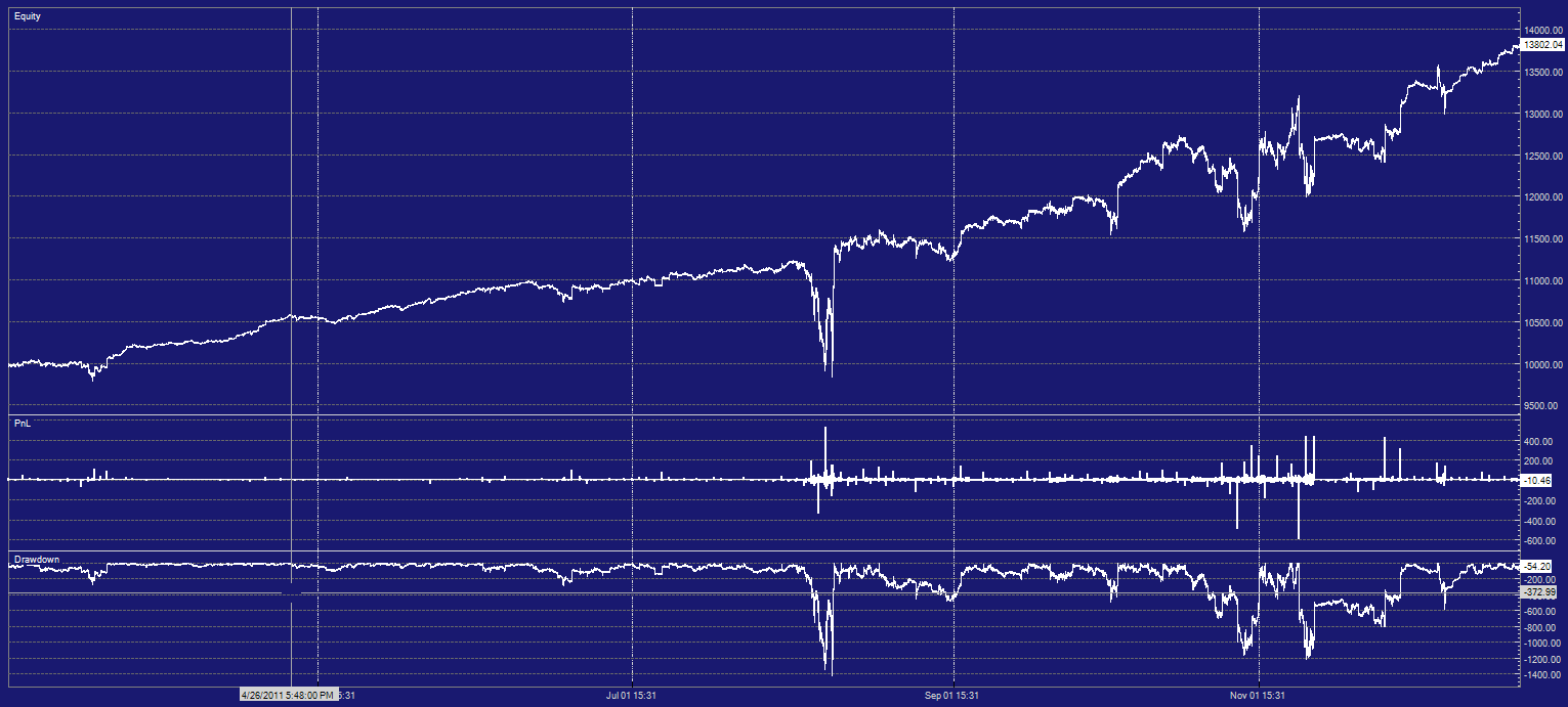 Zajimavy napad, opravdu se to chova lip mi prijde. Prikladam backtest kde je FAZ:VXX 3:1 xzajic Napsal: ------------------------------------------------------- > Pokud by se tím chtěl někdo vážněji zabývat, > prozradím ještě více ze své strategie, už ale bez > čísel. > > pochopitelně, že v některém období je lepší pár > FAS/FAZ, v jiném FAS/VXX. Časem jsem skončil tak, > že jsem si napsal určitou funkci souvesející s > aktuální volatilitou a na základě ní pak páchám > následující: > > * na jedné straně obchodu je vždy fas (řekněme, > ekvivalent 10000 USD). > * na druhé straně obchodu je FAZ a VXX v nějakém > poměru (např. 50/50) a ten poměr řídím > volatilitou. > > Tím se křivka krásně vyhladí.