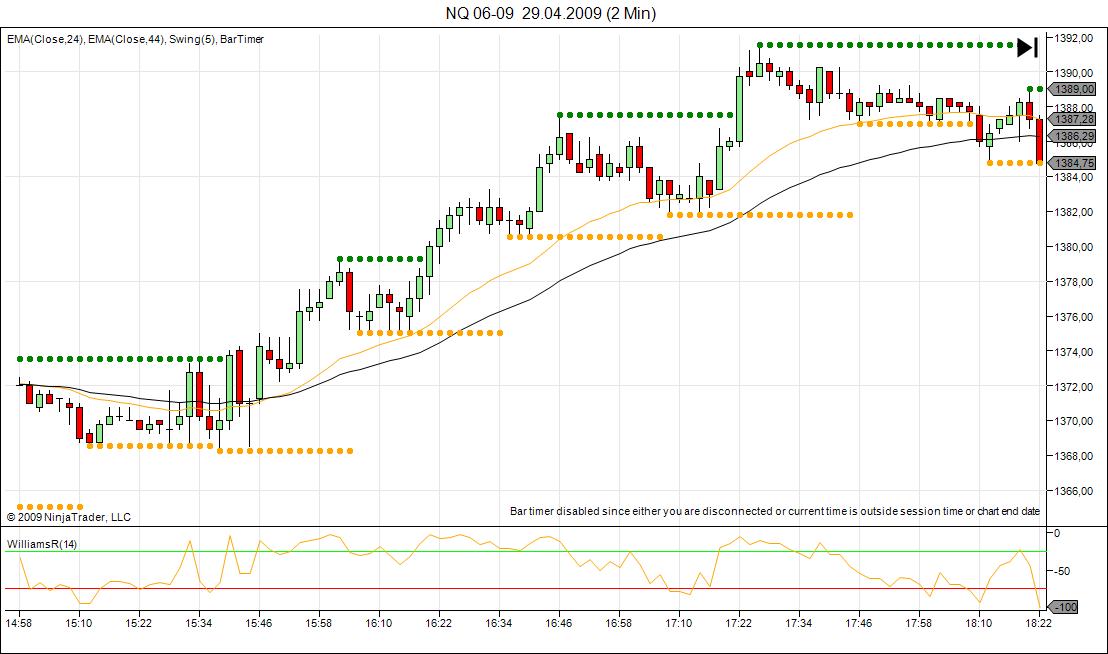 začínat NQ s 2500 USD zavání trochu podkapitalizací ... pokud nehodláte riskovat více jak 2% účtu na obchod, tak vám při pár ztrátách dojde dech, nehledě na to, že řada brokerů při poklesu pod 2000 USD mrazí účet .. doporučoval bych došetřit a trénovat reálnou strategii a nehonit, zda se končí 22:14:59 nebo 22:15:01.
