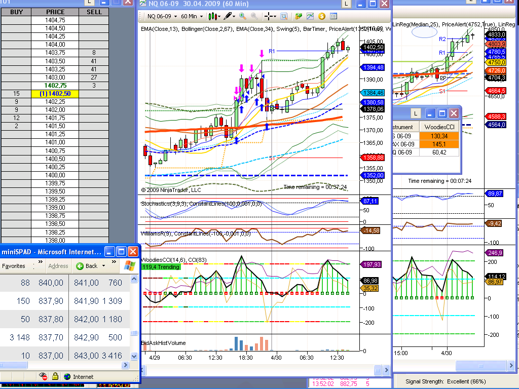 Jak mi může pozici zavřít a na jaké ceně, když NQ trh nejede? Na doplnění po obržení margincall se snad nepočítá v milisekundách, to bych ten margincall ani nestačil přečíst natož na něj reagovat. A vzápětí, kdy se trh rozjede (po 15 minutách) už zřejmě platí margin jen 500$ a na ten mám takže kdyby mi to v tuto dobu prodal, mohu pozici hned nakoupit zpět. Jo, mohu to pár vteřin před koncem zavřít a pak zase hned otevřít což může být absolutně nezbytné, ale právě co když něco selže a zůstanu v tom těch 15 minut viset - na to potřebuji spolehlivou odpověď, to je takovej problém pochopit? A zda-li to funguje stejně i na stranu short kdy by mě vlastně měly peníze na účtu přibejt. Potřebuji odpověď od někoho kdo to ví a ne něký nech to bejt o to se nestarej. Naopak právě když budu mít na účtě dost, tak mě to nemusí zajímat a může mi to být ukradený. Ale když nemám na účtě dost tak musím bezpečně vědět co se může stát a být připraven pak vhodně reagovat abych ochránil svůj kapitál. Overnight margin na demu v Ninjovi nastavit neumím a myslím že ani maitenance margin v tom nefunguje. Intraday margin jo. P.S.: každý den startuji s účtem 1500$ s tím, že za určitých podmínek mám v pozici 2 kontrakty a výjimečně 3 a za včerejšek mám včetně poplatků 15,60-24,40+10,60-34,40-19,40+235,60=183,60$ papertradových a ten poslední jsem vysvobodil v 21:30:42. Všechno to byly shorty na býky, max 2 kontrakty v pozici a všechny strategie skončily na targetech v plusu. Mimochodem Nasdaq mi naráží na strop a nahoru to snad ženou jen šorťáci. Přikládám obrázek pro zasmání a nechci tu číst nikoho kdo na něj bude frfňat.
