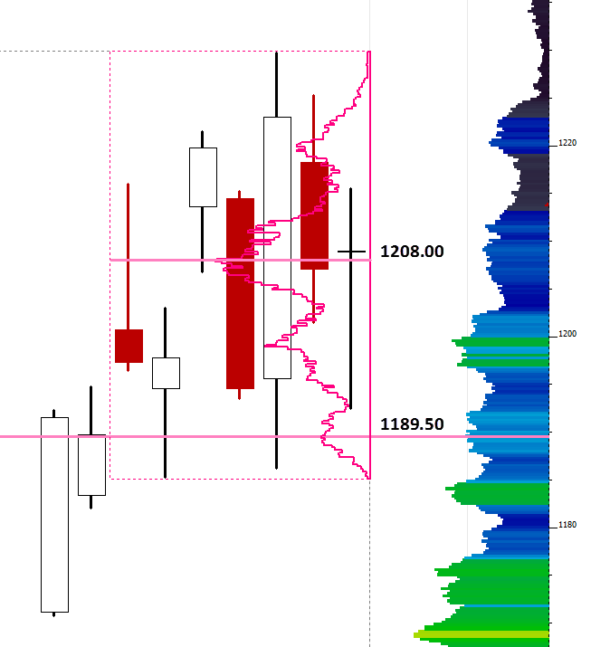 Analýza E-mini S&P Futures 21. října 2011 Neočekáváme opuštění krátkodobé rovnováhy s těžištěm kolem 1208, která se vyvíjí už od 11. října. Naše chápání aukční teorie nám dnes žádné zjevné scénáře nenabízí. Dnes je den před expirací opcí, což bývá pravidelně nejživější den měsíce. Očekáváme rychlé pohyby s velkým objemem obchodů kolem silných oblastí. Dodržování risk plánu v takovém dni je pro obchodníka klíčové. Pro vstupy a výstupy sledujeme úrovně s nízkým objemem obchodů v daném období. Pro uvedenou krátkodobou rovnováhu jsou to 1187.25, 1192.75, 1203.25, 1215.75, 1225.25 Doplněk analýzy: zhodnocení včerejška Včerejšek byl velmi volatilní. Po otevření neměl trh sílu otestovat resistenci 1215.50, po menším boji u otevírací ceny se proto vydal dolů najít si své kupce. To se také podařilo kousek pod zlomovou oblastí 1194, kde došlo k silnému odmítnutí. Ke konci dne jsme se konečně dočkali testu zmiňované 1215.50, která ale byla odmítnuta a trh se vrátil k dennímu těžišti. Z pohledu struktury profilu jsme včera viděli pěkný neutrální den, objemem obchodů se včerejšek řadí mírně nad průměr. Obr: vodorovné linky ukazují těžiště krátkodobé a dlouhodobé rovnováhy.