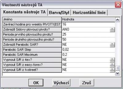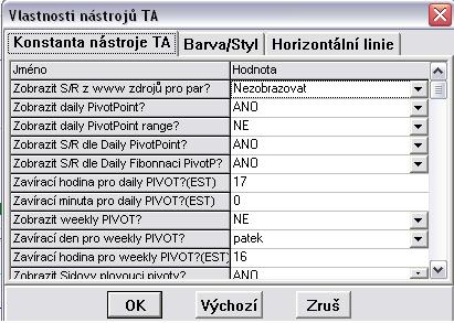 Standby: Že tam je těch čar více je naprosto v pořádku a vůbec to vybočuje z režie autora... :-) Musíš si uvědomit, že všechny hladiny se zároveň stahují ze tří různých na sobě nezávislých zdrojů. Z toho dva zdroje uvádí hned 3 hladiny S/R, jeden zdroj po dvou hladinách. Celkově tedy do grafu dostaneme 8 supporů a 8 resistancí pro daný obchodní den! Když vezmeš v úvahu, že každá stránka ty S/R vyhodnocuje trochu z jiných hledisek, tak se může stát, že všech 8 čar je po grafu různě rozseto. To je však výjimečná situace, velice často se tyto zdroje částečně, nebo i úplně shodují. Pokud se shodnou přesně, v grafu nepoznáš, že se ty čáry překrývají. Jen jich potom samozřejmě napočítáš méně jak 8. Pokud se rozchází v nějakých pár pips, čáry jsou velice blízko sebe, to je taky normální a celkem časté... (češí to mají vše rádi hezky kulaté, Američani jsou obyčejně na pips přesný) :-) Pokud by jsi chtěl některý zdroj vyhodnocovat- zobrazit nezávisle, i na to jsem myslel. Vše si můžeš v té konfigurační tabulce nezávisle na sobě povypínat. Opět přikládám obr. Tu smyčku jsem doprogramoval hlavně kdyby některá stránka měla ten den výpadek, tak aby se neaktuální data z ní jednoduše vypnula... Co se týče té "nepřehlednosti", tak opravdový gulášek začíná, když si k tomu všemu ještě zároveň zapneš Sidovy pivoty s nastavitelnou periodou, weekle pivot, daily pivot, S/R počítané z pivotu dle standardního vzorce a S/R dle fibonnaciho... :D Na první pohled sado-maso, já však používám vše a v pohodě se díky barevnému rozlišení orientuji. Je pak velice efektní porovnávat různé překrývání těchto hladin...