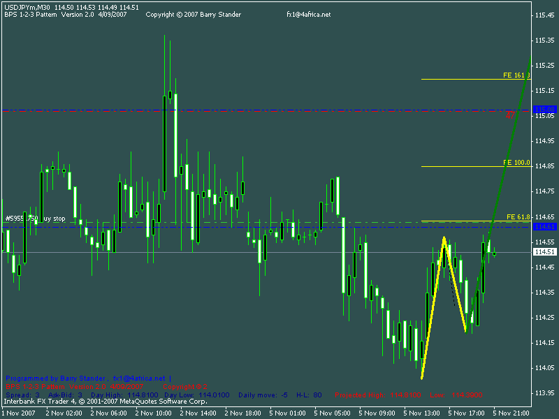 Andrea84 Napsal: ------------------------------------------------------- > Mimochodem mám ještě jednu otázku, je to ohledně > zadání příkazu...Jak zadám zároveň Sell stop a Buy > stop když je signál pod cenou? Sell stop mi zadat > jde, ale nevím jak zadat příkaz na opačnou stranu > až by došlo k obratu. MT4 mě nenechá to zadat, > musím tedy čekat až se cena dostane pod tuto > hranici a teprve pak zadat Buy stop pokyn? Pardon > za blbou otázku, příkazy jsem ještě nepoužívala Jen pro upřesnění, pokud ti na grafu pattern zobrazí, že bude možné něco zobchodovat, zadáváš čekají pokyn, v následujícím případě je to BUY STOP (zelená) a PROFIT TARGET (červená) . Pokud jdeš do obchodu dřív a říkáš si, že budeš mít o dalších 20 pipsů víc (pokud nakoupíš hned), situace se může změnit a cena k tvému čekajícímu pokynu ani nedorazí = potom je jasné, že budeš ve ztrátě ....... Pokud cena přece jenom dorazí a tvůj pokyn se aktivuje a přesto to jde na opačnou stranu, tam ti ztrátu zastaví STOP LOSS, jehož hodnotu si musí každý určit sám podle svého money managmentu. Osobně dávám SL do 10 pips, když ti nějaký obchod uteče, během dne budeš mít minimálně ještě 10 až 15 příležitostí si "zadovádět".