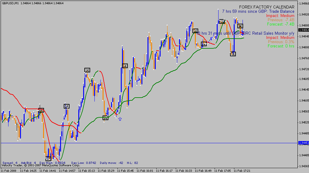 FFcal zobrazuje do grafu termíny správ z forexfactory, v pravom hornom rohu ich vidieť. Ak Ti to nezobrazuje, možno treba niečo nastaviť v editácii indikátora.