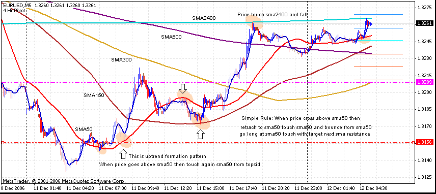 LUKY Napsal: ------------------------------------------------------- > 2 frantacech, > > myslím, že jsi se někde zminoval o tom že > nepoužíváš nebo, že nejde použít násobení periody > s TF. To znamená ema20 na M5 neni stejný jako > ema60 na M15. Tak se ptám ze zajimavosti, jestli > máš nějaký koeficient nebo radu o kolik to > upravit. > > díky Pouzivam nasobeni periody. Sice si uvedomuju, ze to neni exaktne presne, ale na druhe strane to vypada designove prehledneji nez MTF MA, ostatni traderi to zjevne respektuji taky a pokud neni rozdil mezi TF obrovsky je to relativne presne. Je dulezite si uvedomit, ze trading neni primarne exaktni matematika, ale psychologie. Tzn. pokud neco funguje, protoze to i ostati pouzivaji a respekuji, nema smysl se trapit tim, ze to neni exaktne matemiaticky a graficky ok. Chart 5Min Chart. with following Simple Moving Average. SMA 2400 Close na M5 = SMA50 H4 Res/Sup EMA 960 Close na M5 = EMA 20 H4 Res/Sup SMA 600 Close na M5 = SMA50 H1 Res/Sup EMA 240 Close na M5 = EMA20 H1 Res/Sup SMA 300 Close na M5 = SMA50 M30 Res/Sup SMA 150 Close na M5 = SMA50 M15 Res/Sup http://www.forex-tsd.com/suggestions-trading-systems/5136-forex-trading-simple-setup.html SMA 50 Close na M5 = M5 Res/Sup SMA 5 Close Represent Current direction.