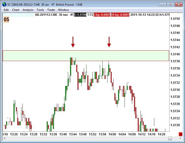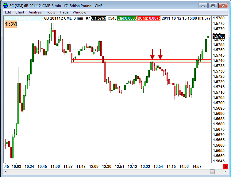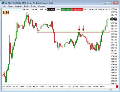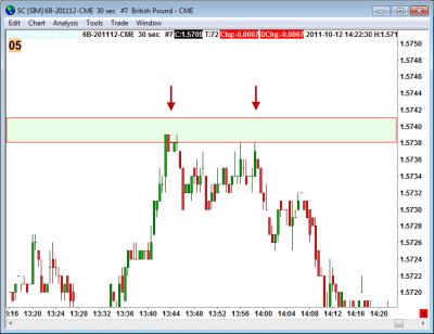 Lico: mě pomáhá "detail". Situace na včerejší libře nabízela podobnou příležitost. Já zakresluji S/R na 30 a 3min a stopy prodávajících pak hledám 30sec grafu, kde taky hledám najlepší místo ke vstupu. Na prvním vrhcholu je vidět znatelné zbrždění a myslím, že by se to červenalo i T&S. Druhý vrchol lower High s "ocasem" nahoru je pak "tutovka" :-)