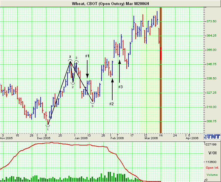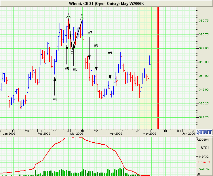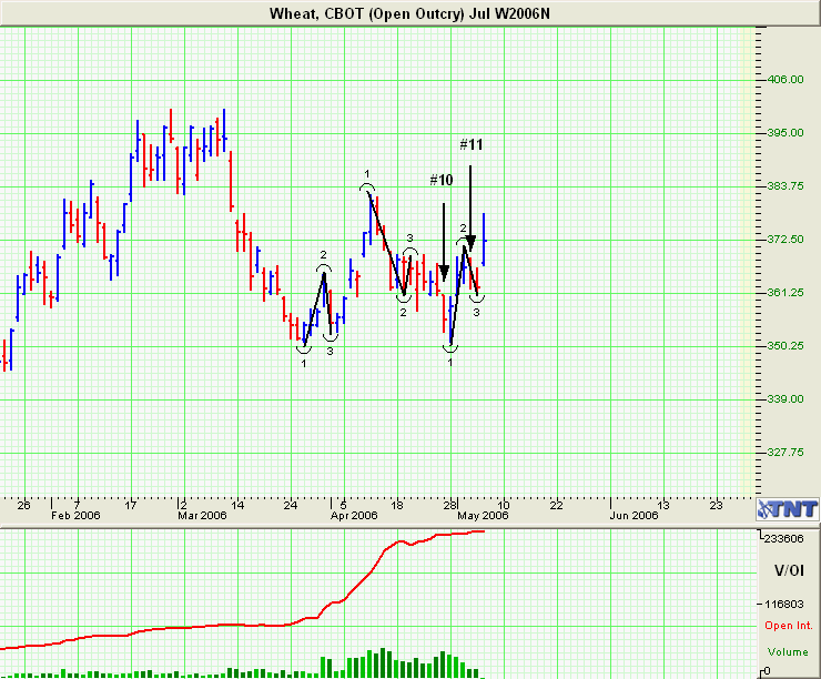Dobry vecer Blackpetr, udelal jsem Vam vstupy na Wheat od ledna 2006 [na trech grafech]. Jedna se jen o ilustracni obchody dle pravidel, ktere obchoduji. Vstupni SL pod low / nad high bar, ktera predchazi vstupni bar a vystup na druhe bar MOC. Obchody #1, #5, #6 byly ztratove, tj. 8 obchodu bylo profitovych. Obchody #1, #2, #7, #10 byly prvni obchody v novem cyklu, tj. bylo mozne je obchodovat dle trendovych pravidel [samozrejme ne kazdy je profitovy, stejne jako swingove obchody]. Jen doplnuji, ze cela moje obchodni metoda je velmi jednoducha, avsak bez detailniho vykladu bude jen tezko obchodovatelna. Proto Vas prosim, nezkousejte jakekoliv realne obchody dle obrazku, ktere Vam zde davam. Pokud Vas tato tematika zajima, zacnete studovat materialy Joe Rosse, kde dostanete detailni vyklad vsech pravidel obchodovani. A posledni, v urcitych bodech neobchoduji dle pravidel Joe Rosse, avsak dle pravidel, ktera jsem ziskal svym testingem nebo studijem jinych materialu. Tj. nejedna se zde o 100% vyklad pravidel Joe Rosse. Preji Vam mnoho uspechu!! Libic