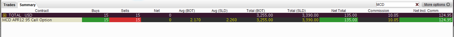 Slíbil jsem nějaké výsledky, tzn. MCD, EWZ a EWH (které jsem výše nezmiňoval, ale koupil rovněž) jsem dnes prodal, vše se povedlo realizovat ziskově, MCD a EWZ opcemi, EWH normálně jako akciové obchody.