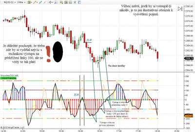 Nerozumím tomu, čemu nerozumíš Gerile :)). Prostě si všímej na indikátoru CCI chvíle, kdy se ta černá čára dostane z5 z extrému do běžné oblasti. Pošlu obrázek pro lepší pochopení... To co psal Jiří je pravda, ale vystupovat na 200 či -200 bych ti nedoporučoval, protože zase tak často se to momentum tak daleko nedostane...kdežto u +100 - 100 je výhoda, že ikdyž se tam nedostane tak je buď chop nebo SL, ale kolikrát se trh vcelku pěkně rozjede a ani nepřekročí +200, -200.
