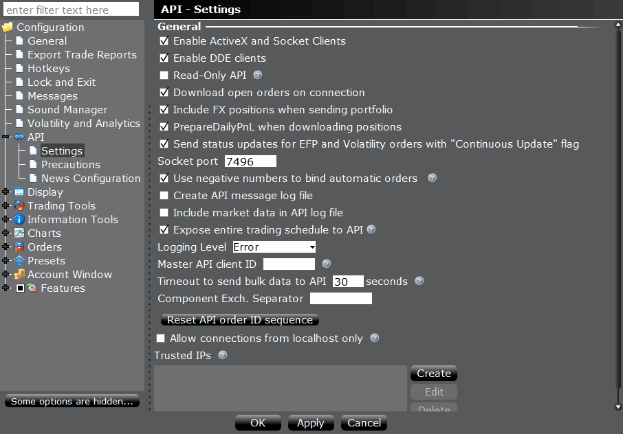 "Trading Keyboard Shortcuts Enabled " - týká se, zda máte k obchodování zapnuto používání klávesových zkratek (ovládání předem navolených akcí pomocí klávesnice)