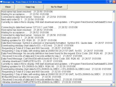 Dle toho výpisu co jste přiložil se mi zdá, že máte špatně zadaný název kontraktu. Zkuste při otevření OpenIntraday Charts zadat: ES-200603-GLOBEX pro ES, ER2-200603-GLOBEX pro ER2 a YM-200603-ECBOT a mělo by to fungovat. Nicméně musím vás zrovna upozornit, že data z dema jsou zkreslená a na testy vám budou bohužel k ničemu.