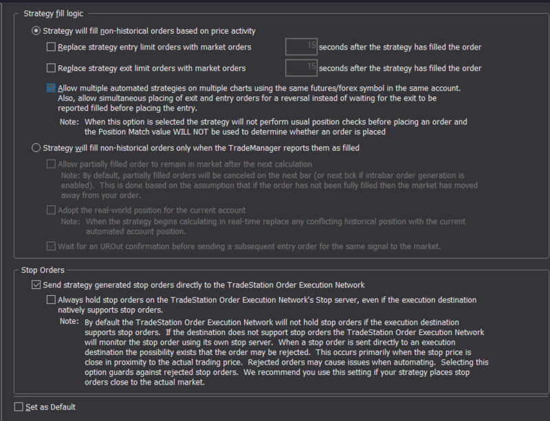 Bohužel TradeStation nemám k dispozici abych porovnal, ale věřím, že obě platformy interpretují výstup v EasyLanguage z AB prakticky stejně (zvlášť u tak jednoduché strategie)