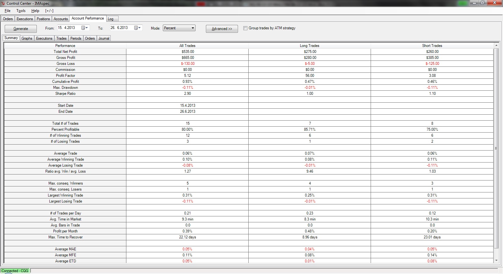 Back testing jsem sice dělal, ale nějaký paper trading na co ? Hold vymazání účtu 2 krát za sebou mi dalo jasně najevo na čem jsem. Dnes kdy jsem se po delší odmlce, srovnání si vlastního života a uvědomění si co je vlastně důležité k tradingu vrátil se mají věci takto. Chodím denně do práce obchodovat, obchoduji ranní seanci od 9-12 na FDAX. Vedu si deník, ukládám všechny grafy a pochopitelně zapisuji všechny obchody. Mám vypracovanou statistiku, dle které se snažím upravovat obchodní plán. Začal jsem toto všechno dělat někdy loni v Říjnu a pokračuji dodnes. Co je na tom divného, nic až na to že toto všechno dělám na Simu. Beru to totiž jako jedinečnou šanci se něčemu naučit ale nic neriskovat. No a emoce, možná to mám jinak, ale prožívám to hodně, je totiž mým cílem byt maximálně konzistentní, vydělávat každý měsíc. Praxe na Simu je jednoznačně tou nejlepší zkušeností spolu s ucelením vlastní psychiky.