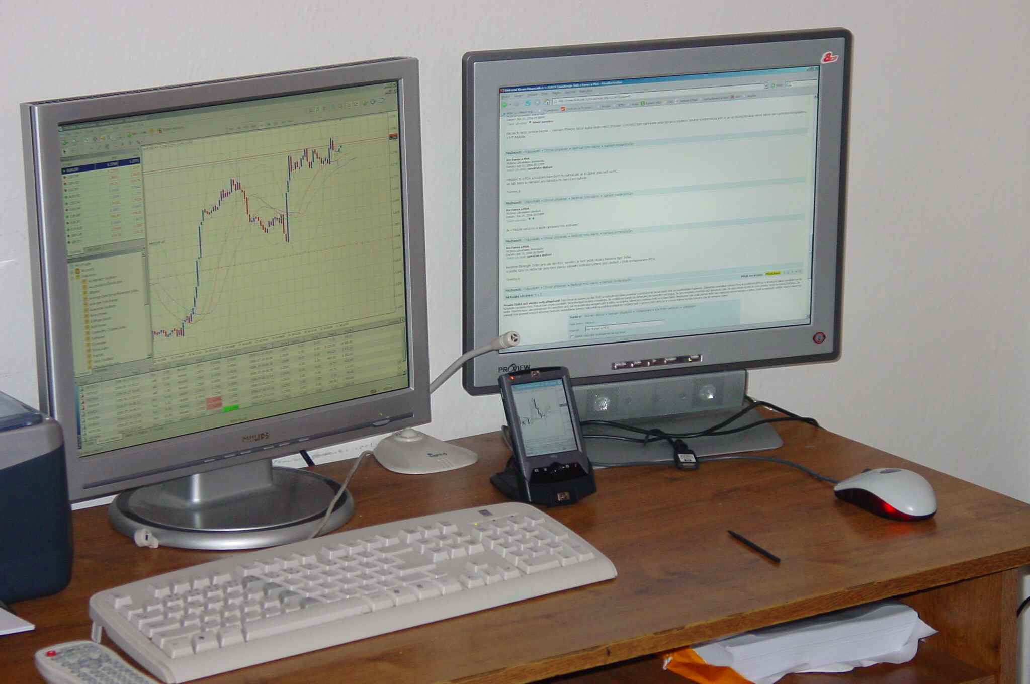 Večer jsem se ještě koukal v posteli na grafy i když burza nejela ...na PC bych už asi tak pozdě nelez ale to PDA je přítulný mazel co vás připraví o všecek volný čas ... :) Ta možnost i u televize třeba kouknout jak vám pěkně cinkají zlaťáky na ůčtu je pro mně bóžo a pro ženu je to snesitelnější než bych pořád čučel do té hučící bedny,která produkuje teplo.