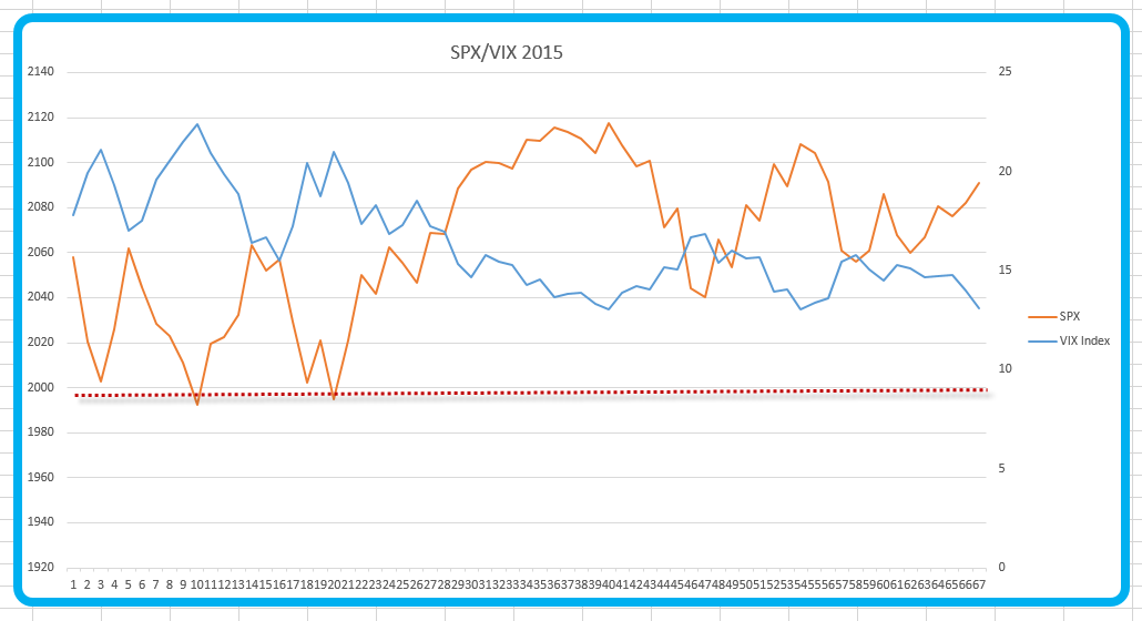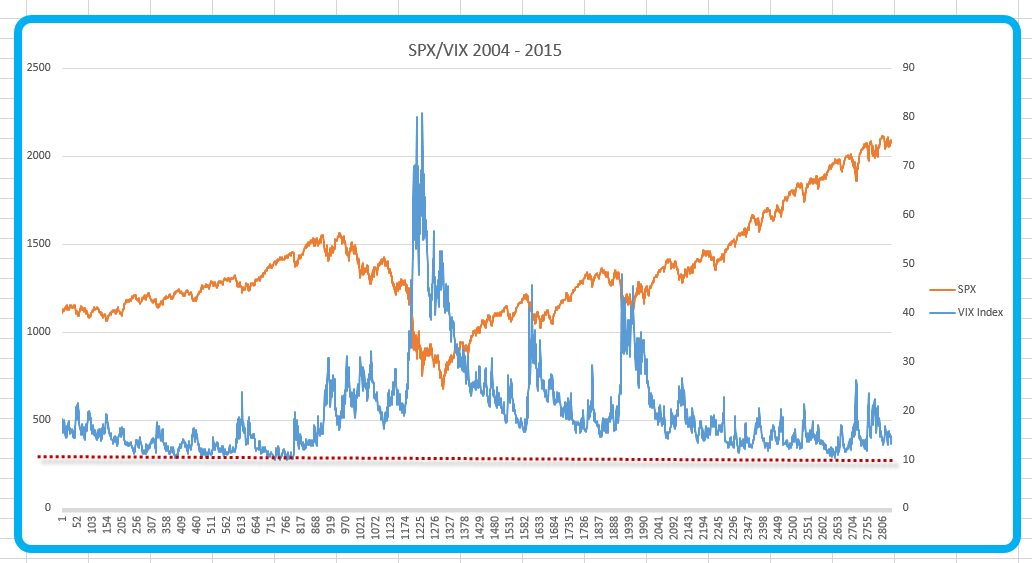 zdravím, V současné době se zabývám hledáním způsobu nebo řešením, které by pomohlo zajišťovat držená portfolia. Protože jsem především opční obchodník, zabýval jsem se myšlenkou, jak zajistit opční portfolio proti pohybům trhu. Tedy jakým hedge nástrojem se vybavit tak, abych nebyl při nepředvídatelném pohybu trhu "vyhozen se sedla". Má volba, celkem logicky, padla na prozkoumání derivátů volatility jako základní složky, která určuje cenu opcí. VIX Index jako derivát volatility měří očekávanou 30-denní implikovanou volatilitu na podkladu SPX (SP 500). Na přiložených grafech vlastní výroby je zobrazeno téměř inverzní chování VIX Indexu k hodnotám SPX. Na prvním grafu je zobrazena celá historie existence VIX Indexu a SPX , na druhém grafu je zobrazeno chování VIX Indexu a SPX v roce 2015. Čeho si nelze nevšimnout je support na hodnotě 10, cena za celou dobu nikdy výrazně pod tuto hodnotu neklesla, i v dobách velkých býčích pohybů doklesala pouze na tuto hodnotu. Zdálo by se tedy, že pořídíme "nějakou pozici" podobnou VIX Indexu a koupíme "něco jako VIX" a pokud nám bude "nějaká pozice" klesat, tak nám bude pozice "něco jako VIX" pěkně růst a dojde ke vzájemné kompenzaci. Toto byla má historicky původní myšlenka. Co jsem ale netušil bylo, že to bude nakonec celé dosti komplikované. Provedl jsem několik backtestů, které rád později přidám, ale velmi rád přivítám veškeré Vaše myšlenky nebo nápady, které by se týkaly takového možného postupu zajišťování portfolia například uvedenými deriváty volatility. Velmi rád bych konfrontoval jiné přístupy z mými přístupy, pokud jste se někdo již podobnými myšlenkami zabývali mohly by pomoci....: c)