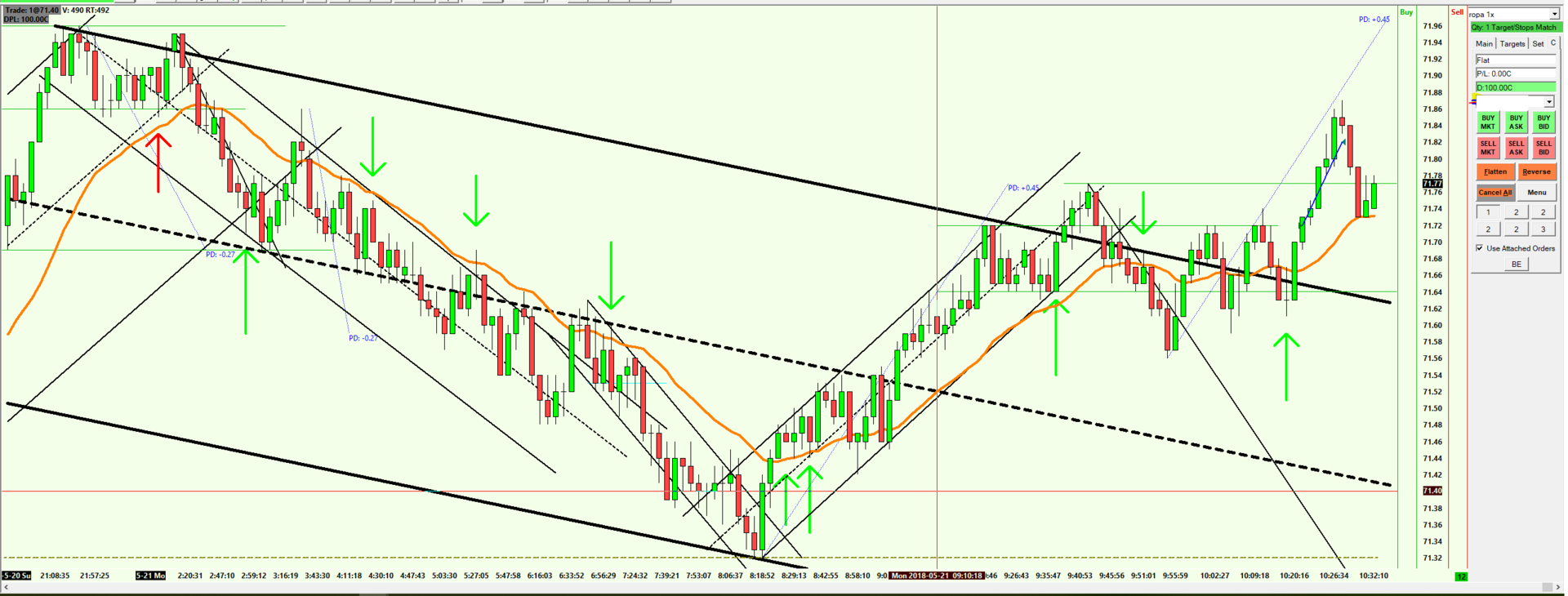 No je pravda, že S/R a základní TL zakresluji, ale né až takovým způsobem jako to máš ty :-) Pokud správně čtu mezi řádky v tvých grafech a zakreslených TL + channels tak je to protnutí S/R, channels + EMA. Zajímavé je sledovat ty tvoje vstupy označené zelenými šipkami ....