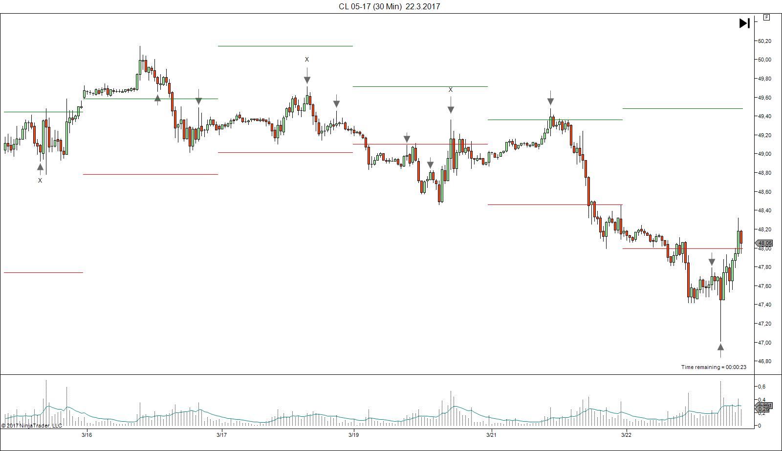 Přihodím screen, kde pouze šipkami označím, jaké situace mě zajímají, abyste si o tom případně mohli udělat zhruba představu (reálně jsem zobchodoval pouze 3 situace - označené X). Postupně bude vše jasnější. Obchoduji poměrně dost jednoduše. Jinak mi to intradenně ani nikdy nefungovalo.