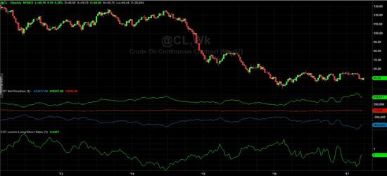 Mam k tomu jednu otazku ohledne COT ratio o kterem se zminujete. Pisete ze to vychazi z pozic velkych zpracovatelu, konkretne z pomeru jejich Long a Short pozic. Zkousel jsem si v Tradestation rychle naprogramovat toto ratio, ale ani zdaleka se nedostavam ke grafu, jaky mate ve svych printscreenech. Muzete zde publikovat trochu vice podrobne jak toto ratio pocitate? Pokud vezmu vas popis, tak jednoduchy long/short pomer velkych zajistovatelu dava tento graf: (zamerne je to stejny trh ropy, aby grafy byli porovnatelne). Predem diky.