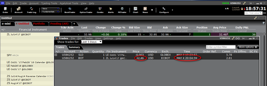 Vstupoval jsem ne příliš proaktivně (ještě jsem čekal na nějaká potvrzení) ale spíše konzervativněji na ceně 32,46 - obr.3
