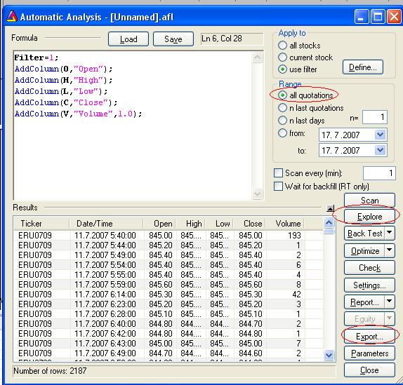asdareel: ja pouzivam obcas na export toto afl, staci nahrat v backtestingu a spustit, inak sa mi zda ze je to