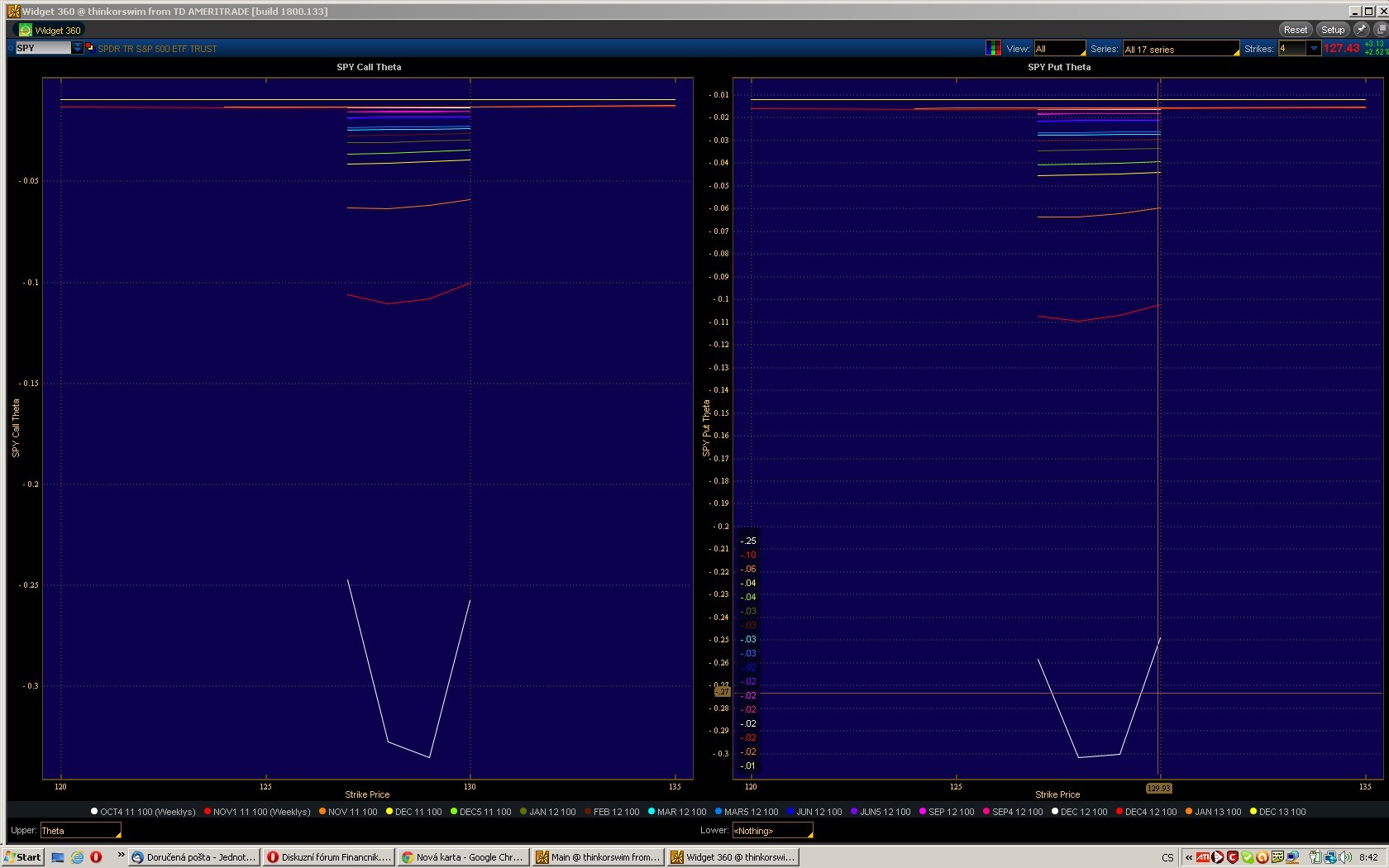 Pro mě je dnes den zajímavých zjištění:) to michaliero: porovnáním screenshotů jsem zjistila, že máme při stejném nastavení jiné hodnoty v TOS. Stejný den, stejný trh, stejná strike, odlišné bid a ask + řecká písmena. Může to být tím, že mám pouze demo platformu? Myslela jsem, že jsou data pouze zpožděná, nevěděla jsem, že se budou tak rozcházet. Díky moc za spolupráci:)