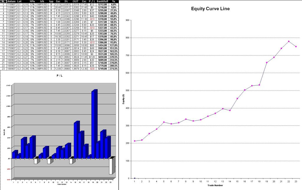 Ahoj, Rád bych se s vámi podělil o první krůčky v backestu mojí strategie. Osobně jsem se dlouho rozhodoval, jestli intraday, nebo pozicne. Vybral jsem si intradeni a cim dal tim vice inklinuji k pozicnimu :) Zabira to hodne casu. Ale to jen tak bokem. Hlavnim duvodem meho prispevku jsou výsledky prvnich nabacktestovaných obchodů. Jde o GBP/USD na TF-M15, platforma VTT. Ano vím, je jich zatím jen hrstka, ale jisto jistě se budou rozmnožovat. Jen bych se rád zeptal na váš názor, protože si osobně myslím, že jsem někde něco přehlédl a udělal chybu, jelikož dosahované výsledky jsou jaksi vyšší až příjde mi nereálné, než jsem si představoval. Co se týče vstupů, dosti mě uchvátil patern Famir z WCCI, který jsem si lehce upravil, ještě jsem přebral a také trošku modifikoval ZLR a třetím paternem je muj vlastní, jen takový jednoduchy založený na přechodu ZeroLine za určitých podmínek. SL je z mnoha důvodů a mé lenosti dopočítavat a hledat stále výhodnější pořád stejné a to 10pips na minilot. Jinak co se týče výstupů, jsou ve většine na hook, nebo na etablování opačného trendu, ale až nasbírám data, uvažuji kvuli usnadnění průbehu obchodování o přechodu na PT. Jo a ještě jedna drobnost, chtěl bych poděkovat Martinu Kyselovi, za báječnou skicu Obchodního deníku. Díky Martine. Moc rád bych taky uvítal spolupráci a výměnu názorů a poznatků s někým, kdo se paterny WCCi na forexu zabývá.