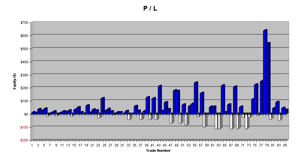 Volfe jak ty jsi na tom s tradingem? našel jsem tvoje příspěvky už někde v roce 2005. To už máš zkušeností na rozdávání nebo? Jinak, dávám sem výsledky dalsich nabacktestovaných dat. Slape to pekne, prvne se mi stalo, ze po vícero ztrátách prijde profitabilni obchod, mnohem vyhodnejsi, nez je průměr. *Výsledky tedy* Obchodů: 85 Ziskových: 58 Ztrátových: 27 Úspěšnost: 68,2% Vklad: $200 Zisk: $3 741 Zhodnocení: 1870,5% Průměrný zisk: $87 Průměrný ztráta: -$47 Průmerné RRR: 1,8 DrawDown: -$224 (2x SL na 0,8lot) Max Zisk: $639 Obrázky: Přeji všem mnoho odhodlání.