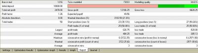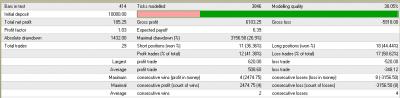 Graf v reportu ukazuje kvalitu modelování svíček, popis je nad grafem. Pokud používáš např. hodinový graf, vymodelují se svíčky grafů všech nižších úrovní pro větší přesnost. MT pracuje na rozdíl od VT s každým tickem, ne s každou svící. Čím větší kvalita modelování, tím pravděpodobně lepší přesnost výpočtu (pokud pracuješ na 1M grafu, bude modeling quality malá, protože už nejsou nižší timeframes pro zpřesnění).