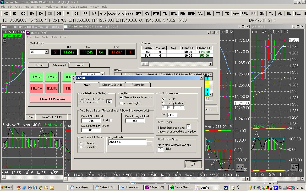 Čau ve spolek. Řeším tady problém s grafy. Dnes jsem si stáhl novu Sierru +ftrader.dll + studies. Vše jsem nainstaloval. Jelikož mam Xp english, tak Woodie CCI funguje od začátku. Problém je vtom, že jsem včera testoval jeden celý měsíc a když jsem se dnes po instalaci k němu vrátil, abych si zkontroloval vstupy a pod. grafy jsou úplně jinak zubrazené, tam kde včera bylo ZLR dnes je něco jiného, včetně cen. Kontroloval jsem nastavení časů - 15:30 - 22:00, 5min. ER2. Poradí někdo co stím? Šlo by porovnat grafy?