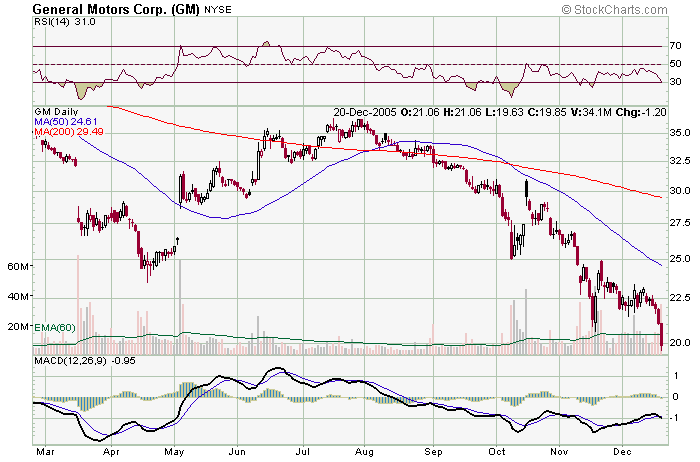 Zdravim Oldas, GM bych ted nekupoval. Vcera propadlo o 5,5% a zavrelo pod 20$ ( minimum od roku 1987 ). Podle mne zatim nic neukazuje na obrat, zatim bych pockal. Nicmene pokud nekdo veri automobilkam ta bych sledoval pro mozny bottom fishing ). Kdyz jsme u tech automobilek - kouknete na TM ( Toyota ) je tesne pod 100$ a zvedla predpoklad prodanych auto pro pristi rok, cimz by se mela stat nejvetsim svetovym vyrobcem. Mohla by jit nahoru. Uspesne obchody Michal