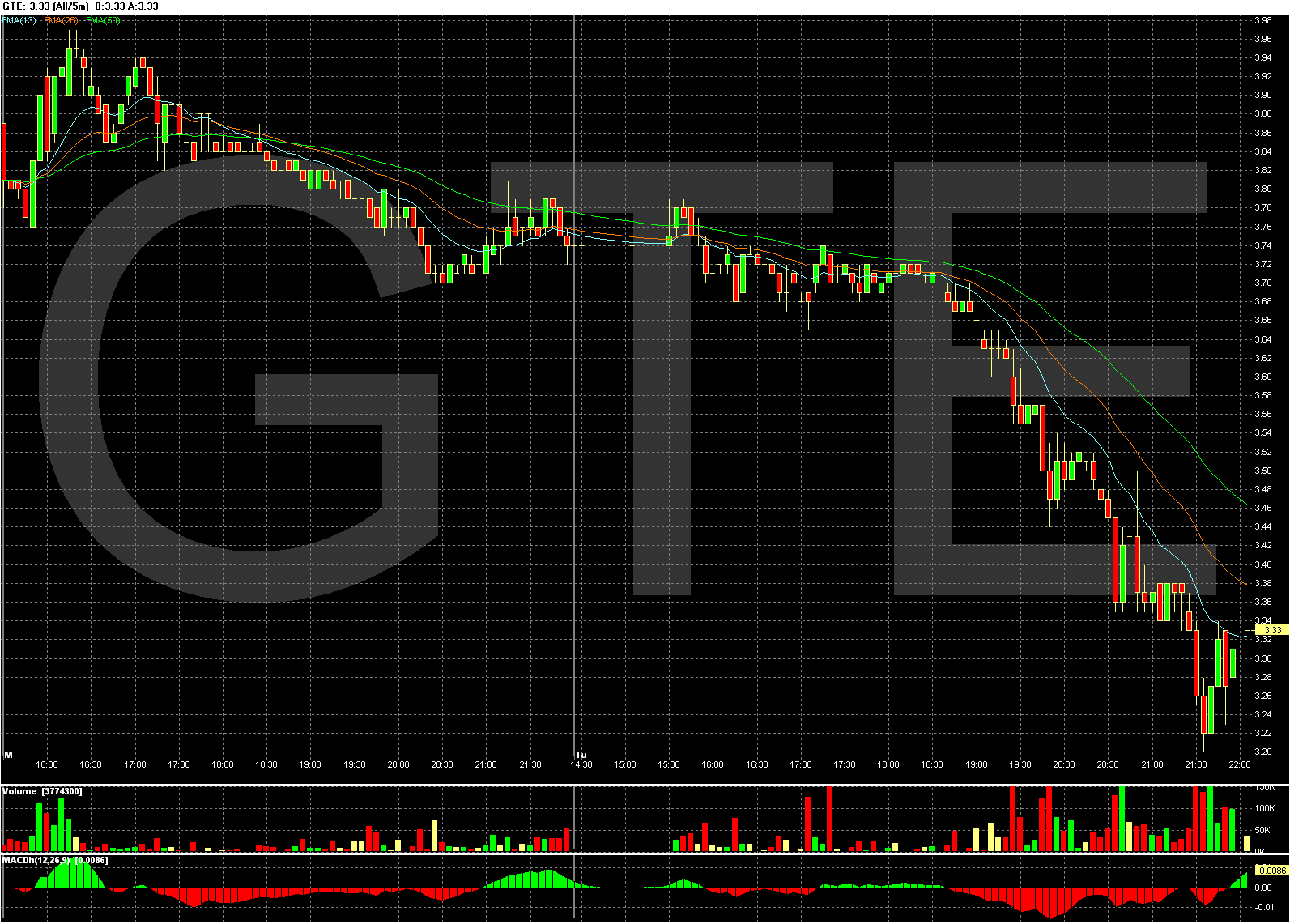 Zdravim vsechny, tak nakonec to s tim celkovym poklesem nebylo zdaleka tak "horke" jak jsem predpokladal. S tou opatrnosti to asi nedokazu dodrzet a jeste si parkarat kliknu. Potesilo moje oblibene AMD, ktere si pripsalo skoro 4% a zavrelo na 29,22, pricemz high bylo 29,77 ( v AH kleslo na 29,01 ). Dnes by si mohlo poprve tuknout na 30 :). Naopak zklamalo GTE, ktere propadlo o 11% na 3,33 , jeste ze nevysel ten vstup ze ctvrtka. Uvidim jak se bude tvarit pri dnesnim obchodovani. Kdyby to kleslo pod 3,20 a pak se otocilo nahoru tak uvazuju o nakupu. Uspesne obchody Michal