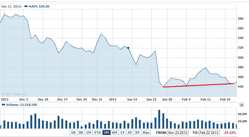Pokud zanedbám poslední nákupní šílenství kolem sedmiseti dolarů, mohu brát v úvahu poslední rezistenci na úrovni 650 ti. Vzhledem k tomu, že 32% papírů leželo v rukou drobných investorů a spekulantů, dá se očekávat další rezistence právě na již zmiňovaných 442 dolarech.