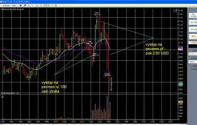 Nevim,jestli to co mi jde nejlip se jmenuje skalping, ale zatim funguje. Pockam na nejaky trend ci S/R uroven, vstoupim a hned po dosazeni 100 USD vystoupim. Nekdy i za par minut. Zisk nic moc, ale na to jsou prece multikontrakty.