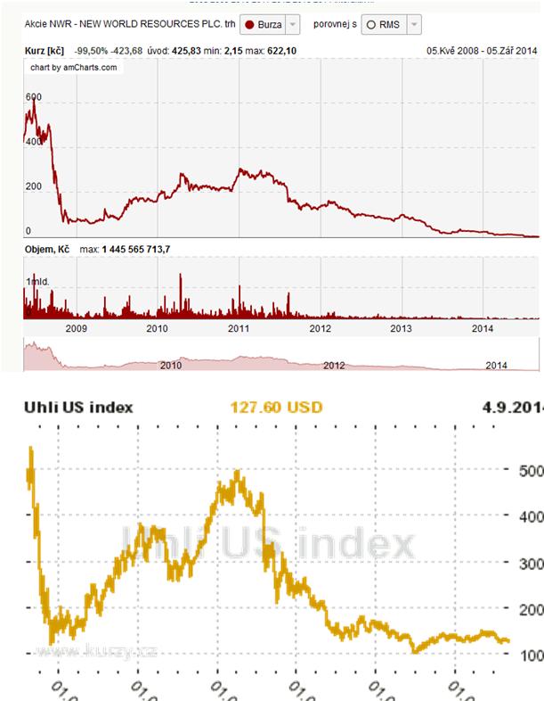 - Závislost ceny akcií NWR na ceně uhlí je zřejmá a nízká cena uhlí má na krizi této firmy zásadní vliv. V tuto chvíli se cena uhlí prodává za cenu, jako v letech 2009. Tentokrát vytvořila cena cca dvouletou rezistenci na hodnotě, pod kterou se ani při poslední krizi nedostala. Pravděpodobně to souvisí s jinými komoditami, které se používají v energetice. Tj. jedná se zde o pevná paliva (dřevo), plyn, a další, které se již teď prodávají dráž. - Sezonní výkyvy sice firmu přímo neohrožují, ale i ty hovoří pro spekulaci. O další existenci firmy se rozhoduje zrovna v létě, kdy je o nákup uhlí snížený zájem. Na grafu NWR je vidět, že si každoročně vede lépe v druhé polovině roku. - Restrukturalizační plán již postupně odsouhlasili také akcionáři společnosti i držitelé zajištěných i nezajištěných dluhopisů. Pokud se pro vysloví příští týden i americký soud, vydá NWR 5,03 miliardy nových akcií při ceně přibližně 0,0235 eura, tedy asi 0,65 Kč za kus. Nové akcie si budou moci koupit stávající akcionáři, a to v poměru 19 nových akcií na jeden stávající cenný papír. Obchodování s nově vydanými cennými papíry má být po jejich plném uhrazení zahájeno 30. září. Tzn. že abych se dostal k úpisu za cenu pod jednu korunu za akcii a měl přednostní právo k nákupu, poslední šance k nákupu akcií byla v pondělí 3. září. Je otázka, na jakou hodnotu se akcie propadnou po naředění pěti miliardami cenných papírů a zda nebude cena 65 haléřů na papír příliš vysoká, ale je to poslední příležitost. Navíc je možné, že se trh více přiklání k tomu, že naředění projde, než že americký soud k tomuto kroku nedá souhlas, a tak toto rozhodnutí může být již do aktuální ceny promítnuto, tedy nemusela by po rozhodnutí soudu cena spadnout až tak hluboko. - Proč investovat do NWR a ne do komodity uhlí? Jednoduše proto, že při investicích do komodit se musím chránit stoplosem, kdežto u akcií je možná ztráta předem dána. Dalším argumentem může být to, že cena uhlí klesla od roku 2009 o 80 procent, kdežto NWR o 99,5% ... tzn. čistě hypoteticky, že pokud by se ceny vrátili do svých původních max. hodnot, tak při investici do uhlí mohu vydělat 400%, kdežto investice do NWR může přinést zisk 29900% (a nemusím se chránit stopkou). Je to jen hypotéza a dost přetažená za vlasy, protože firma nyní bojuje o přežití a je otázkou, jak silně byla touto krizí poškozena a jak dlouho se z ní bude vzpamatovávat a jestli se vůbec vzpamatuje. Každopádně potenciál zisku k riziku je velmi zajímavý. - Pár set kousků jsem si pro strýčka příhodu koupil a teď zkusím naředit těmi levnými bezcenými papíry. Uvidíme, co to udělá ... a to jsem si říkal, že Nokia bude můj největší hřích a že do žádného většího rizika nepůjdu :-)