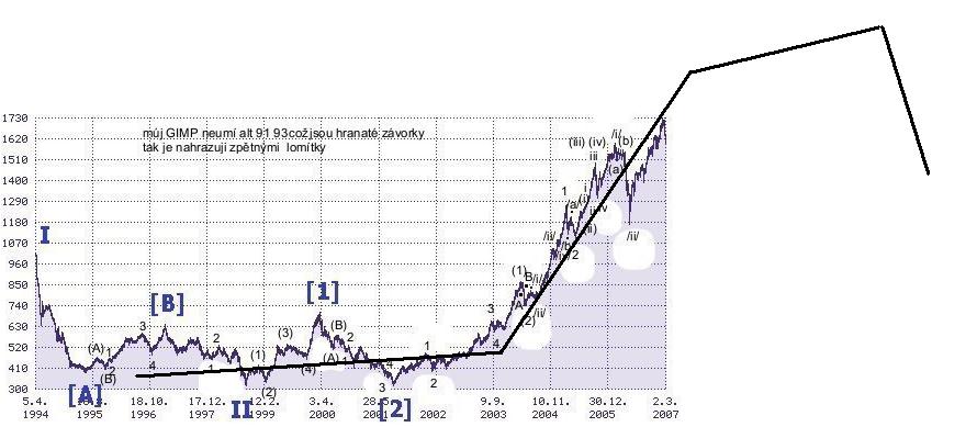 Rarit, Vďaka za pripomienky, čo sa dá opravím, doplním plus pripájam moje vyjadrenia k jednotlivým bodom. 1. Obrázky jsou nekontrastní a nekoukatelny. -Hmm, tie dva obr. vo formáte png. sa na prvý pohľad zdajú nečitatelné. Problém sa odstráni v menu kliknutím na lupu, alebo zoom... A keby to nahodou predsa niekomu nešlo, pripájam uvedený graf aj v ďalších formátoch, ktoré podporuje financnik.cz. Samého ma zaujíma, ktorý formát bude najlepšie čitateľný. A myslím, že nie len ja ocením, keď sa k /ne/-čitatelnosti jednotlivých formátov vyjadria i ďalší prispievatelia finančníka. Mne subjektívne sa javil najčitateľnejší práve png formát. 2. Údaje znač do grafu, nikdo to nebude luštit. - Jo, jednotlivé vlny som pospájal. 3. Z uvedené části grafu ani ten největší profík nic nevykouká. - ??? 4. Je třeba i úsek (vlnu) před zobrazenou částí. - Bohužial viac do minulosti ako od r. 1978 sa aspoň v MT4 nedostanem. Analýzu som začal najväčším 5-vlnovým impulzom, ktorý tam myslím je. Z grafu je zrejmé, že ho dodnes v hodnote HL zatiaľ žiadny iný impulz neprekonal. 5. Pak snad bude někdo ochoten k tomu připojit názor - Práve o to mi predsa ide !